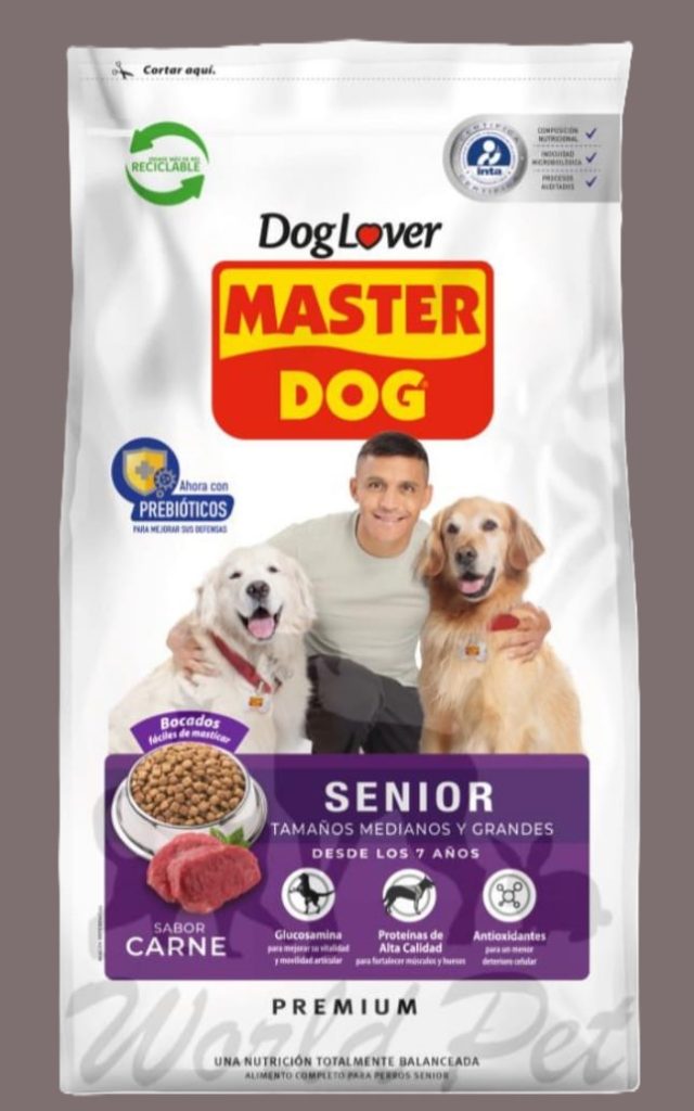Alimento recomendado para tu Master Dog Senior desde los 7 años de todos los tamaños y razas. Contiene Glucosamina y Condroitin Sulfato que favorecen el cuidado articular.