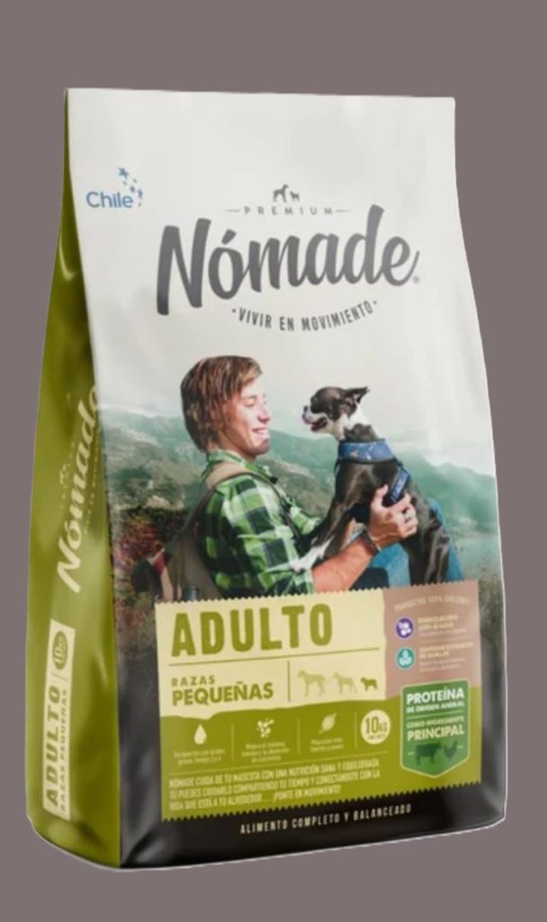 Nómade es un alimento para perros adultos de razas pequeñas desarrollado por expertos en nutrición animal.