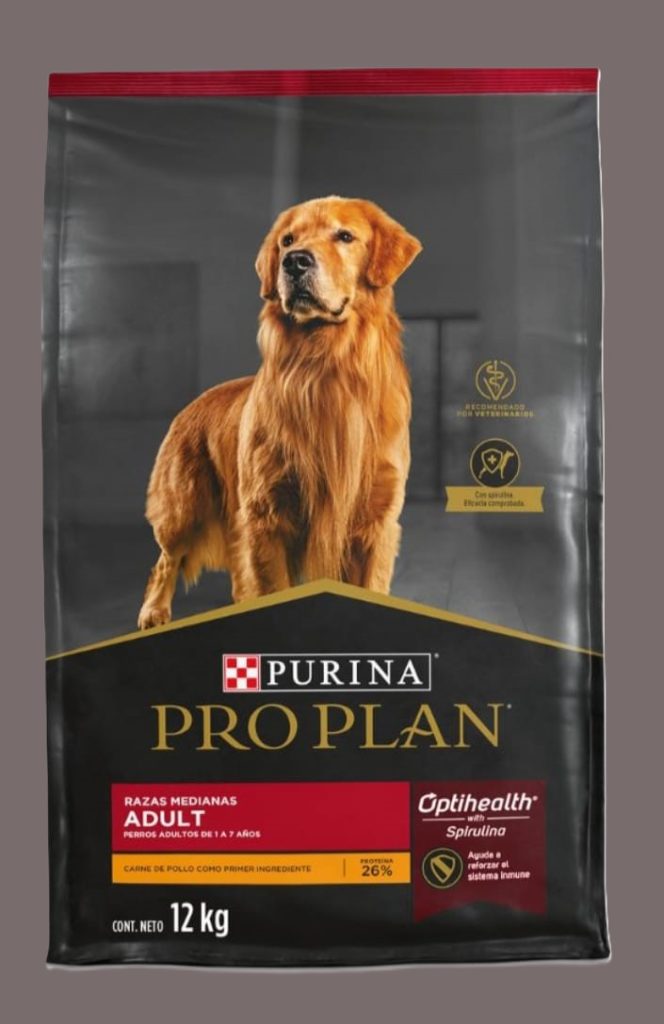 Carne de pollo congelada, maíz, harina de subproductos de pollo, trigo, arroz, gluten de maíz, aceite de pollo y/o grasa vacuna preservados con tocoferoles (fuente de vitamina E), hidrolizado a base de subproductos de pollo y/o cerdo, sal, carbonato y/o fosfato cálcico, pulpa de remolacha, cloruro de potasio, zeolita, aceite de pescado y/o harina de alga (Schizochytrium sp.), suplemento vitamínico antioxidante (A, D3, E, K3, B1, B2, B3, B5, B6, B7, B9, B12, BHT), sorbato de potasio, spirulina (Arthrospira platensis), cloruro de colina, suplementos minerales [(sulfatos: zinc, hierro, manganeso, cobre, magnesio),(proteinatos: zinc, hierro, manganeso, cobre, selenio), yodato de calcio, selenito de sodio], levadura seca (Saccharomyces cerevisiae ssp.), L-lisina, DL-metionina, ácido ascórbico (fuente de vitamina C).