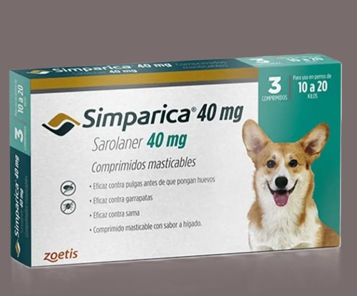 Simparica 40 mg es un antiparasitario masticable para perros de 10 a 20 kg. Indicado para el tratamiento de: